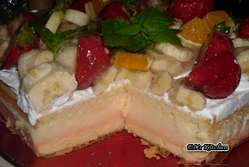 С гумена шпатула съвсем леко обърках сместа за да не се разпаднат ягодите тъй като сместа е тежка.